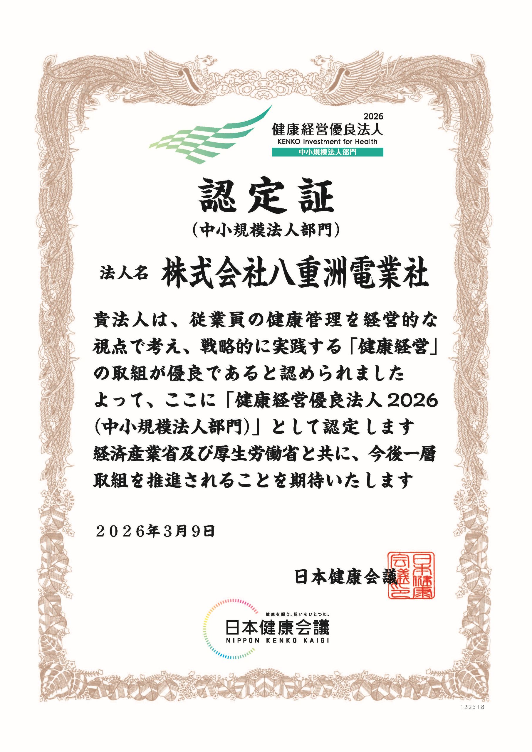 「健康経営優良法人(2026中小規模法人部門)」の認定を受けました。(2026/3/9)
